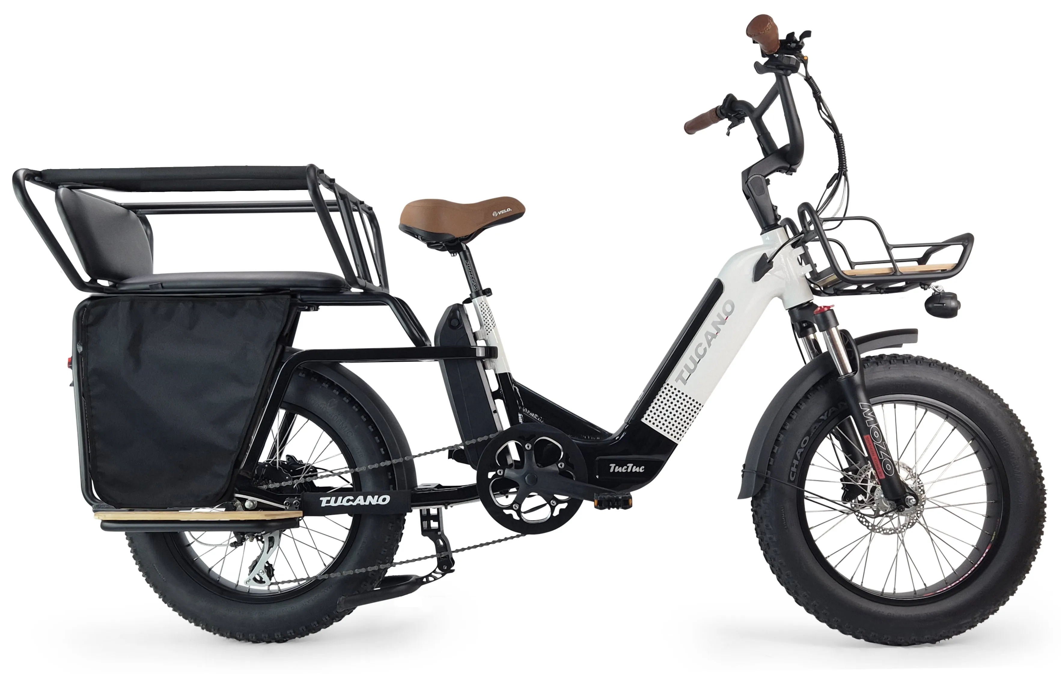 La TUC TUC es una bicicleta eléctrica familiar o una cargo bike , apta para un adulto y dos niños o para cargar hasta 100Kg de diversión.